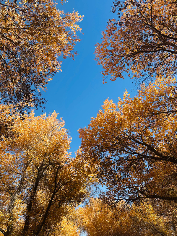 再往西去,泽普的胡杨在秋日里燃烧。金叶掩映的河流,像一条静默的诗,从雪山流来,奔向戈壁。风穿过枝桠,仿佛在讲述这片土地上的人们——无论是放牧的哈萨克、种田的汉族,还是守河的维吾尔人——他们的故事早已缠绕成一体,如这片胡杨林般坚韧而共生。